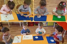 Художественно- эстетическое развитие (лепка) " Витамины в баночке". Дети второй группы раннего возраста научились разминать руками пластилин, отщипывать маленькие кусочки от куска пластилина и катать из них шарики.Надавливая на шарик, прикрепляли его к основанию.