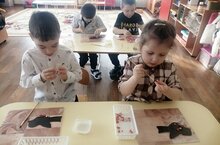 В рамках тематической недели "Народные промыслы" воспитанники старшей группы учились составлять узоры из элементов татарского орнамента на бумажных силуэтах татарской национальной обуви - ичиги.