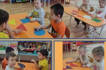 Сегодня дети второй младшей группы на занятии по познавательному развитию (ФЭМП) закрепляли знания о геометрических фигурах, сравнивали их по величине, выкладывали из счетных палочек силуэты геометрических фигур.