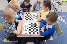 Во второй половине дня ребята подготовительной группы на бесплатном кружке познакомились с историей возникновения игры в шашки, рассмотрели шашечную доску, научились раставлять фигуры. После того как дети усвоили общие правила, приступили к знакомству с основными этапами игры в шашки.