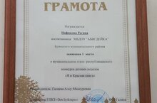 Татарстан Республикасының Биологик ресурслар буенча дәүләт комитеты "Бусинки " беренче кечкенәләр төркеме тәрбияләнүчесе Регина Нафикованы "Мин һәм Кызыл китап"республика балалар эшләнмәләре конкурсының муниципаль этабында жиңүе (1 нче урын, грамота)белән тәбрик итте. Регинага жиңүче грамотасы һәм бүләкләр тапшырылды.