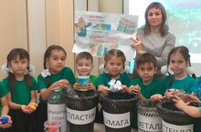 Сегодня в подготовительной к школе группе "Звездочка" прошла акция "Мы за раздельный сбор мусора".