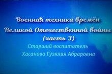 Старший воспитатель Хасанова Г.А. для детей старшегоо дошкольного возраста разработала серию видеофильмов "Военная техника времен Великой Отечественной войны", в котором дети могут онакомиться с легендарной военной техникой, с помощью которой смогли выиграть в войне, с основными интересными событиями, фактами военных действий, а также собрать модели танков, самолетов, машин и кораблей.