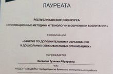 Лауреат Республиканского конкурса "Инновационные методики и технологии в обучении и воспитании" 20.05.2020
