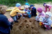 Сегодня завершается недельный проект "Юные техники" творческой работой воспитанников-они строят необычные замки из песка. Даже младшая группа с большим удовольствием насыпает песок в ведерко и строит свой замок.