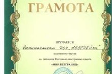 Сегодня воспитанники нашего ДОУ выступали в районном мероприятии Фестивале иностранных языков "Мир без границ". За активное участие были награждены грамотой И.И.Ханбикова.