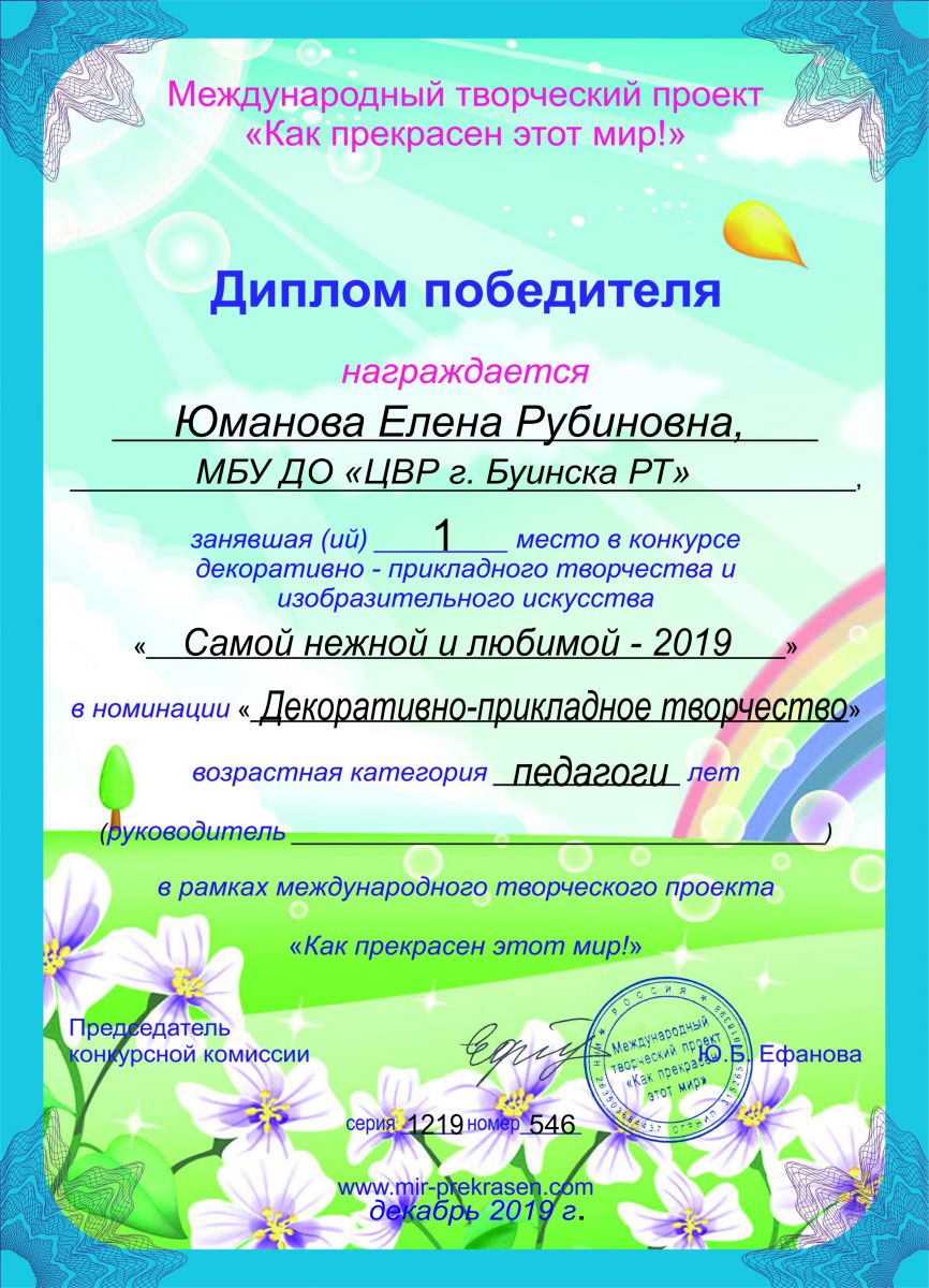 заявка Юманова Елена Рубиновна