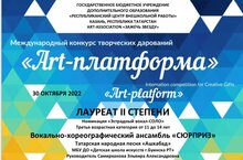 В Международном конкурсе творческих дарований "Арт- платформа"приняли участие учащиеся Детской школы искусств Вокально- хореографический ансамбль "СЮРПРИЗ" и Хайруллина Алсу (преподаватель Самирханова Э.А.) а так же дуэт "Радость" (преподаватель Зайнуллина В.Р.)