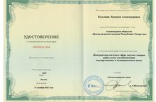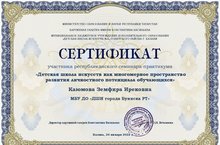 Балалар сәнгать мәктәбе директоры вазыйфаларын башкаручы Кузьмина Людмила Александровна "Дәүләт һәм муниципаль ихтыяҗларны тәэмин итү өчен товарлар, эшләр, хезмәт күрсәтүләр сатып алу өлкәсендә контракт системасы" өстәмә һөнәри программа буенча квалификация күтәрү курслары узды.