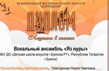 Поздравляем вокальный ансамбль "Яз нуры" (руководитель Тазетдинова Наиля Наилевна) с Дипломом Лауреата II степени в Международном фестиваль-конкурсе искусств "ВОЗРОЖДЕНИЕ". Номинация:" Эстрадный вокал".