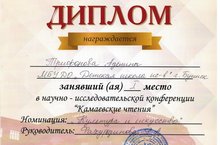Учащаяся ДШИ Трифонова Аделина с преподавателем Фахуртдиновой Резедой Анваровной приняли участие в ежегодной научно-исследовательской конференции "Камаевские чтения" в номинации "Культура и искусство".