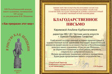 Руководитель Каримова Альбина Кубангалиевна получила Благодарственное письмо от организаторов конкурса.