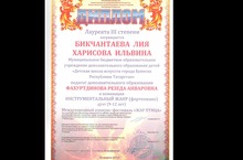 30 марта 2014 года в г.Казани в ДШИ №3 прошел Международный конкурс "Таланты Вселенной" "Жар - Птица", в котором приняли участие учащиеся инструментального отделения ДШИ под руководством Фахуртдиновой Р.А.. Харисова Ильвина и Бикчантаева Лия стали лауреатами III степени в номинации "Инструментальный жанр" (фортепиано) дуэт.