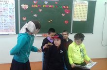 Учащиеся начальных классов в рамках декады инвалидов провели классный час и показали сценку "Добру откроются сердца".