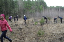 В рамках акции наши учащиеся приняли активное участие в посадке молодых саженцев ели, сосны, березы.
