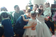 Выступление агидбригаты дошкольников с поздравлениями для ветеранов ВОВ Матросова В.П. и Тимрякова К.С. в сельской библиотеке. 20.04.2018