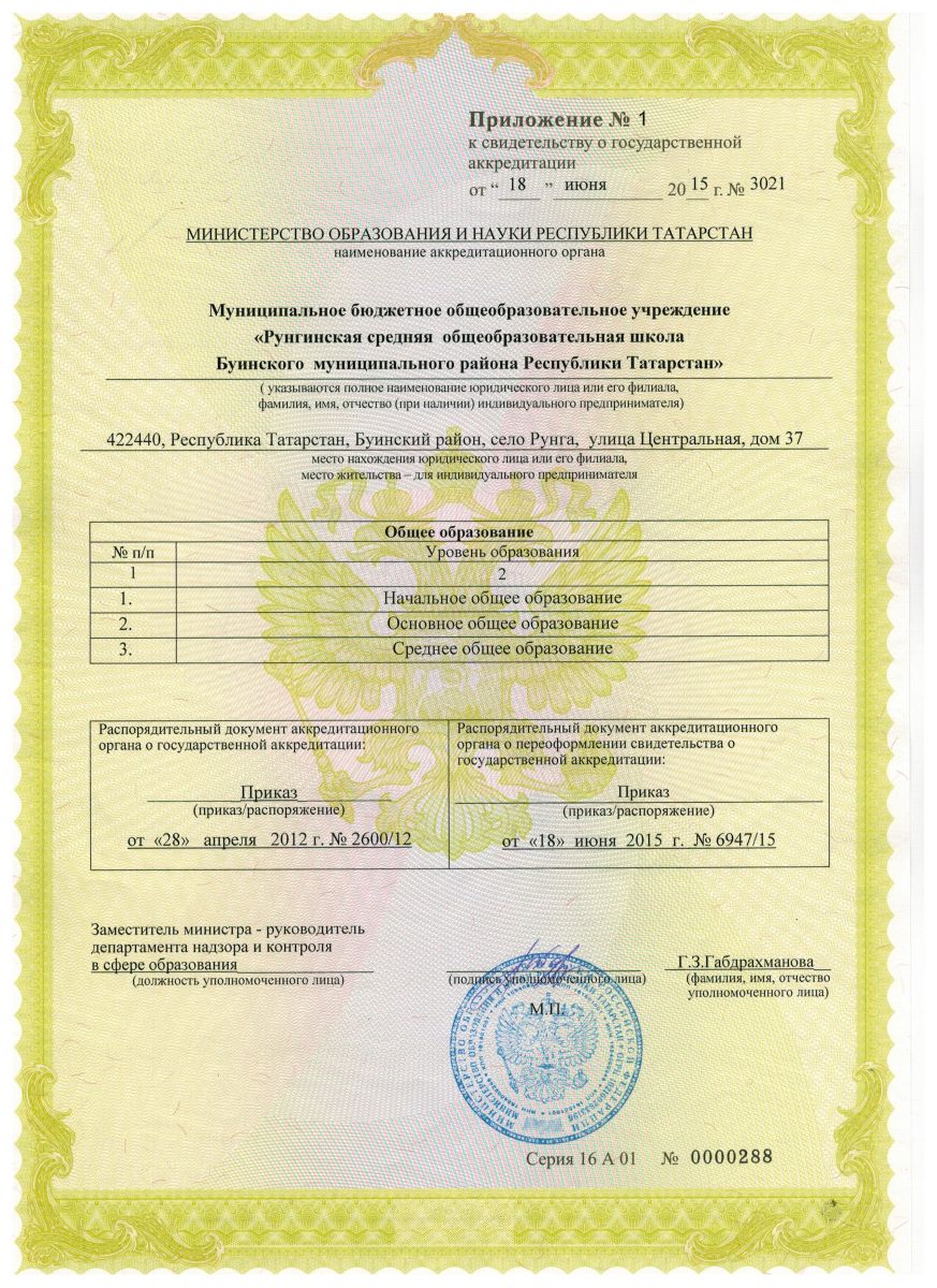 Муниципальное бюджетное общеобразовательное учреждение «Рунгинская средняя общеобразовательная школа Буинского муниципального района Республики Татарстан»