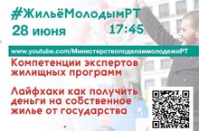 Министерством молодежи Республики Татарстан в рамках мероприятий Всероссийского Дня молодежи, в целях повышения эффективности информирования молодежи о действующих в Татарстане программах и мерах государственной поддержки молодых семей, молодых специалистов в улучшении жилищных условий 28 июня 2021 года в 17.45 проводится второй прямой эфир #ЖильёМолодымРТ.