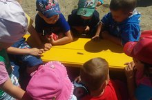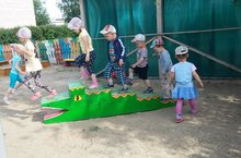 Наш новый зеленый друг. 17.06.2016 Благодаря нашим умелым родителям, на площадке детского сада появился новый обитатель - зеленый крокодил. Дети с радостью принялись с ним играть.