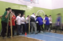 Затем команды вышли на старт. Учитель ОБЖ Заббаров Ф.З. провел разные эстафеты.