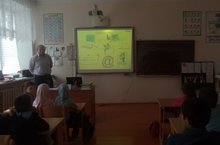 Перед учащимися начальных классов выступил учитель информатики. В своем выступлении он использовал компьютерную презентацию. Ознакомил ребят с правилами энергосбережения.