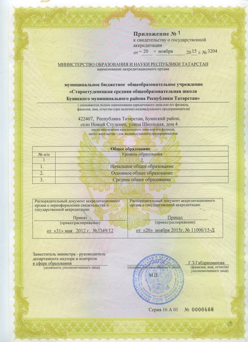Адрес: 422407,Республика Татарстан,Буинский район, село Новый Студенец, ул. Школьная, д. 4