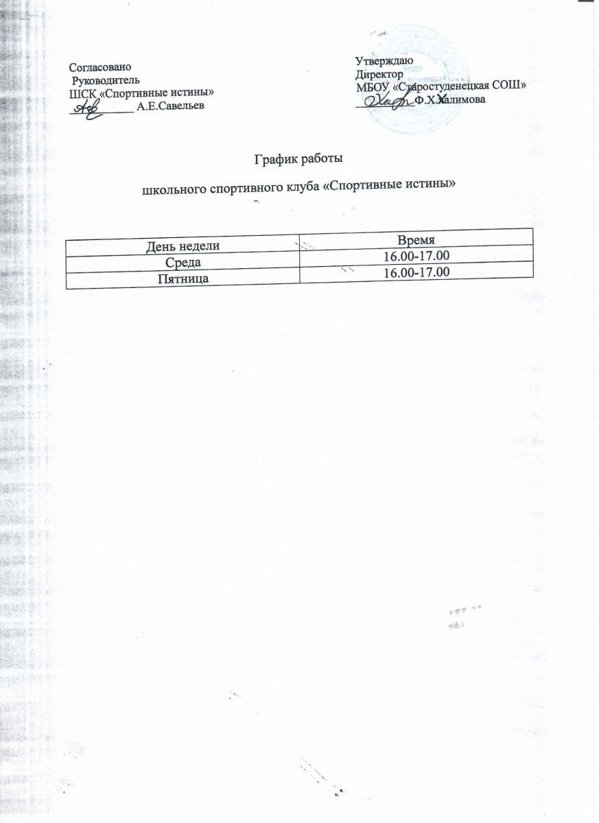 План работы школьного спортивного клуба.