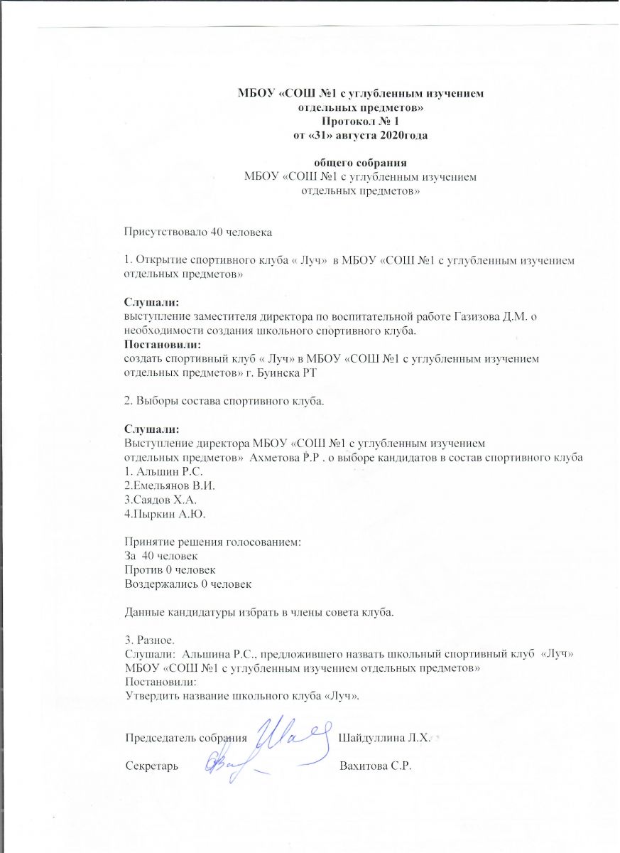 Короткое название: МБОУ "СОШ №1 с углубленным изучением отдельных предметов" г.Буинска РТ