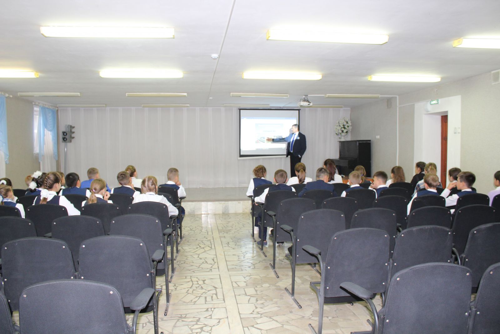 Сегодня командир 4 взвода 1 роты ДПС ОСБ ДПС ГИБДД МВД по Республике Татарстан майор полиции Р. Р. Миннебаев провел беседу с обучающимися 8 кл. на тему: "Безопасное поведение детей на дорогах". Он напомнил о правилах безопасного поведения на дорогах.