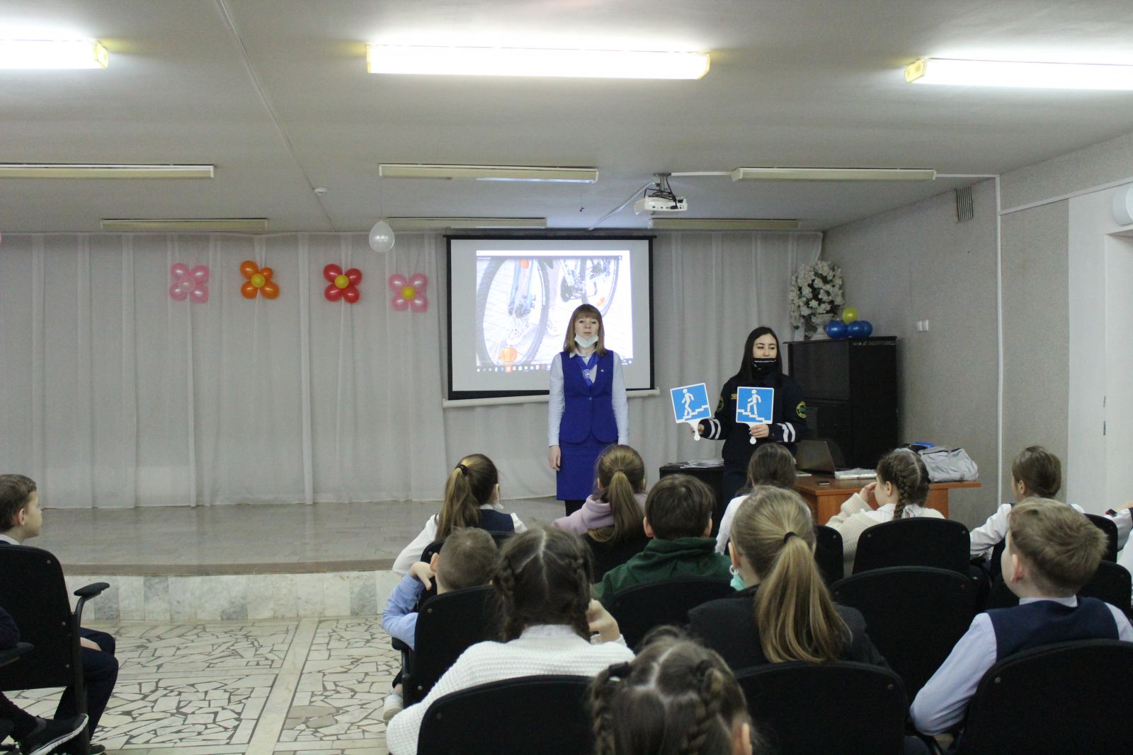 В целях пропаганды безопасности дорожного движения, детского травматизма, снижение количества ДТП с участием детей, формирование бережного отношения к жизни и здоровья сотрудники ГИБДД провели беседу с обучающимися 4-5 кл.