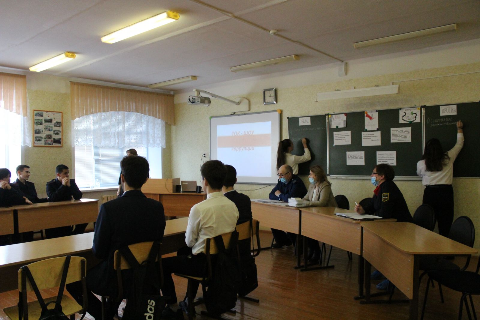 В преддверии Международного дня борьбы с коррупцией в старших классах МБОУ "Гимназия /5 г. Буинска РТ" проведено антикоррупционное мероприятие. Приняли участие обучающиеся 10-11х классов, приглашённые гости:помощник главы Буинского муниципального района по вопросам противодействия коррупции Шайхаттарова З. А., помощник Буинской городской прокуратуры Гиззатулин Р. А., директор МБУ"Центр "Форпост " Мустафина Р. И., специалист по работе с молодежью МБУ "Центр "Форпост" Сабитова Р. З стали участниками ток-шоу "ЗА и ПРОТИВ коррупции".