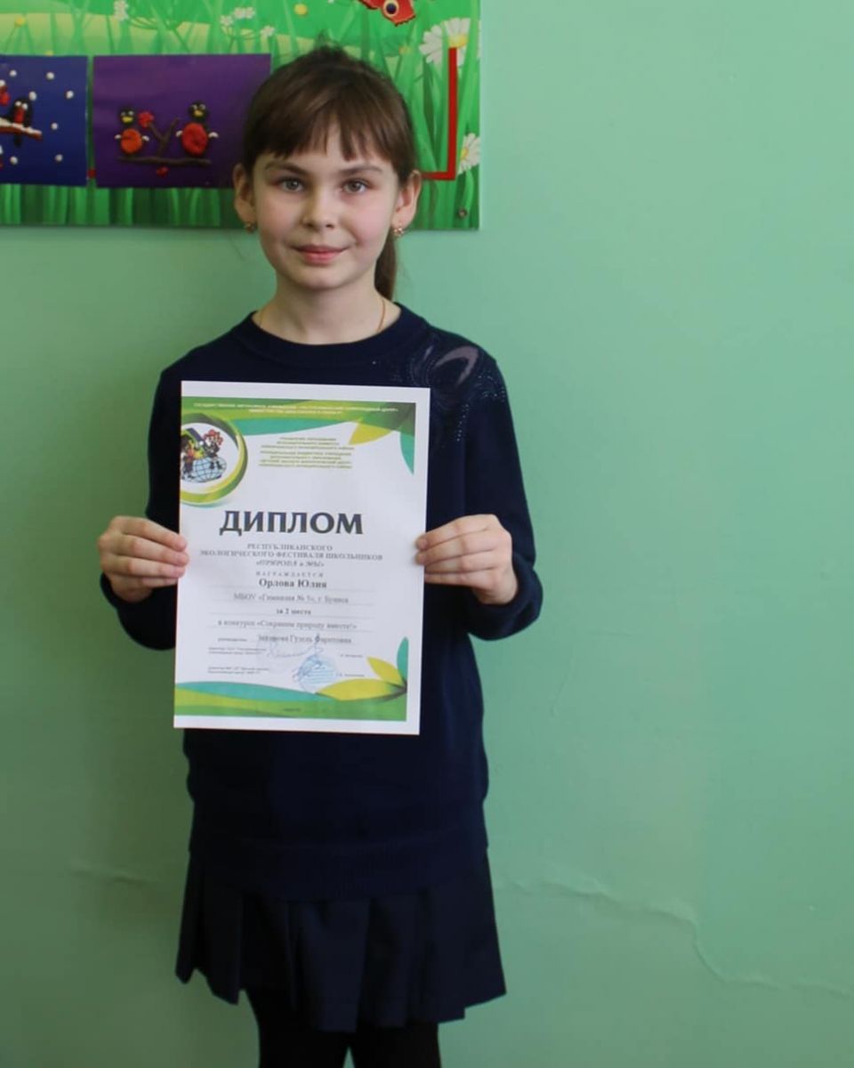 Обучающиеся гимназии 5 Орлова Юлия и Штыркин Илья участвовали в Республиканском экологическом фестивале школьников "Природа и мы" в номинация "Сохраним природу вместе" (рисунок). Орлова Юлия заняла 2 место, Штыркин Илья получил сертификат об участие.
