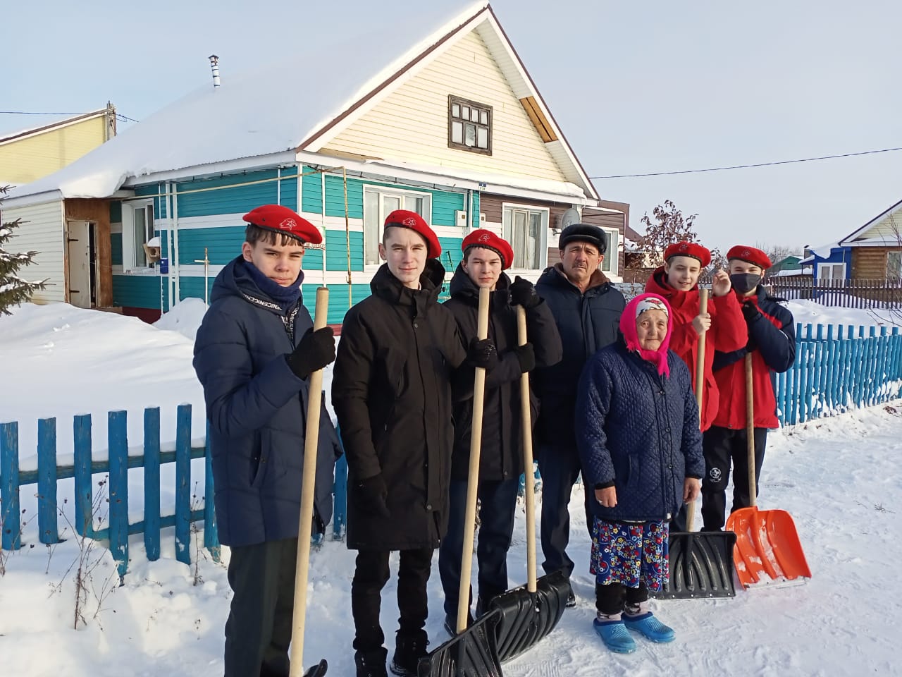 Обучающиеся 8б кл. гимназии оказали адресную волонтерскую помощь одинокому пожилому пенсионеру. Добровольцы навестили Дышина Мансура Валиевича. Ребята убрали и вынесли снег со двора его частного дома.