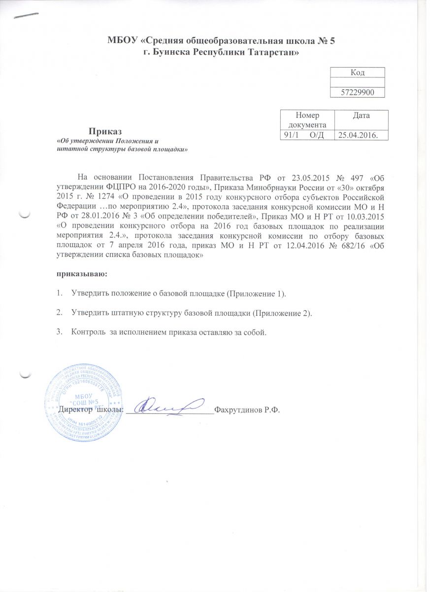 Положение о базовой плащадке МБОУ "Средняя общеобразовательная школа №5 г. Буинска РТ"