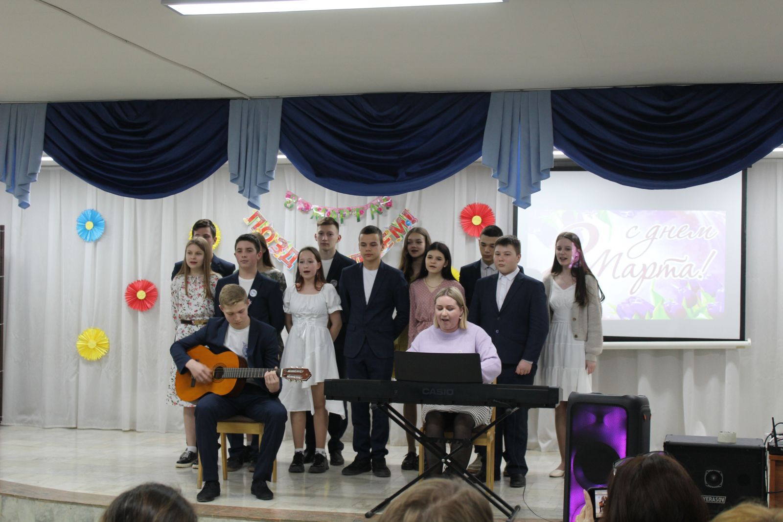 Опубликовано: 06.03.2023В преддверии первого весеннего праздника в нашей гимназии прошел праздничный концерт, посвященный Международному женскому Дню 8 Марта. Вокальные номера и танцевальные композиции, подготовленные обучающимися, подарили всем присутствующим много приятных и положительных эмоций. Все ребята в этот день старались подарить свою радость, благодарность и доброту.