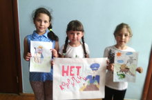 В пришкольном лагере "Солнышко" проведена беседа и конкурс рисунков на тему "Нет коррупции!". На фото победители конкурса.