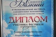 IV республикакүләм үзешчән сәнгатьтә катнашучылар фестивалендә чыгыш ясап, “Җыр” номинациясе буенча Диплом белән бүләкләнде. Коллегабызны иҗади уңышы белән чын күңелдән котлыйбыз.