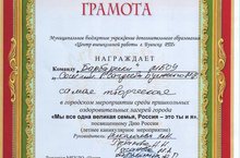 Наш пришкольный лагерь "Барбарики" принял активное участие в городском мероприятии среди пришкольных лагерей города "Мы все одна великая семья, Россия - это ты и я", посвященному Дню России. За патриотическую песню "Я люблю тебя Россия!", рисунок на асфальте, посвященный Дню России наш отряд награжден грамотой МБУДО "Центра внешкольной работы", как самая творческая команда.