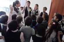 Учащиеся 7а класса, дежурные по школе под руководством классного руководителя Бызовой М.А. организовали подвижные перемены для учащихся младших классов.