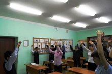 Вопросу физического воспитания детей в нашей школе уделяется большое внимание. Каждый день начинается с зарядки. При проведении зарядки используется комплекс упражнений, разработанный инструкторами и учителями физической культуры. Короткая разминка перед началом занятий не отнимает много времени и сил у школьников, зато позволяет проснуться и как следует настроиться на учебу.