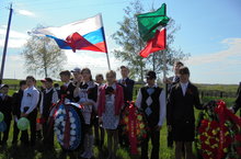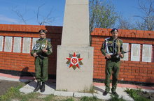 Возле памятника погибших в ВОВ солдат Верхнелащинского СП.