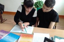 Ученик 9 класса и учитель чувашского языка и литературы при подготовке к ОГЭ.