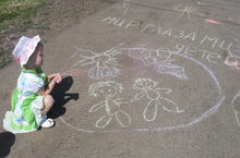 Ко Дню защиты детей в детском саду был проведен литературно-музыкальный праздник "Дружат дети на планете!" (воспитатель Маланчева О.Н.) Дети играли в игры разных народов, узнали что на нашей планете живут люди разных национальностей, что все они живут дружно. В конце мероприятия ребята нарисовали на асфальте свое представление о мире.