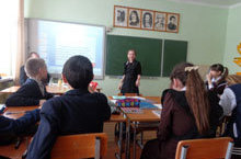 Наши выпускники частые гости в нашей школе. Вот и сегодня у нас в гостях Чалина Елена, студентка Поволжской академии физкультуры, спорта и туризма. Елена ознакомила выпускников с академией и с условиями приема для абитуриентов. -