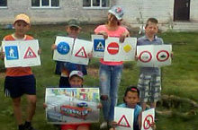 В пришкольном лагере «Солнышко» особое внимание уделяется правилам дорожного движения. -
