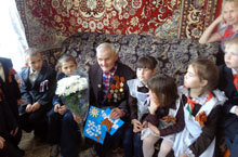На сегодняшний день у нас в деревне остался один ветеран войны – Борисов Павел Николаевич. Учащиеся частые гости в доме ветерана. Вот и сегодня учащиеся первого и второго классов побывали в гостях у ветерана (учителя Трофимова Л.М., Еферова Л.А.). Дети поздравили ветерана с праздником, вручили цветы, подарки, сделанные своими руками. -