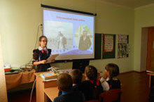 «История развития кино в нашей деревне» - так называется исследовательская работа ученицы 4 класса, с которой она выступила перед учащимися начальных классов (руководитель Трофимова Л.М.) -