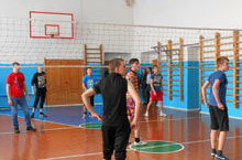 Между учащимися старших классов и выпускниками прошлых лет прошло соревнование по волейболу. -
