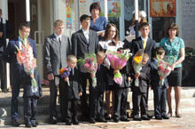 День лучами озарен,Над землей восходит он.Он для каждого из нас,День улыбок и цветов,День хороших, добрых слов,День крылатых новостей,День горячих встреч друзей.Вот и кончилось весёлое лето, а вместе с ним умчались такие короткие летние каникулы. Сегодня первый торжественный день учеников. В нашей школе первый звонок прозвенел для шести первоклассников. -