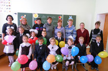 Бодро и увереноШкольный год мы началиМного интересногоЖдет нас впереди.С каждою страницею,С каждою задачею,С каждою отметкою,Будем мы расти.В первом классе прошел праздник "Посвящение в первоклассники". (учитель Трофимова Л.М.) -